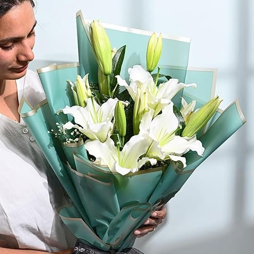 Flower Bouquet of White Lily Flower In Premium Paper For Birthday & Anniversary Gift, Wedding Gift, Mother’s Day Gift, Love Romance Gift, Father’s Day Gift (Same Day Delivery)
